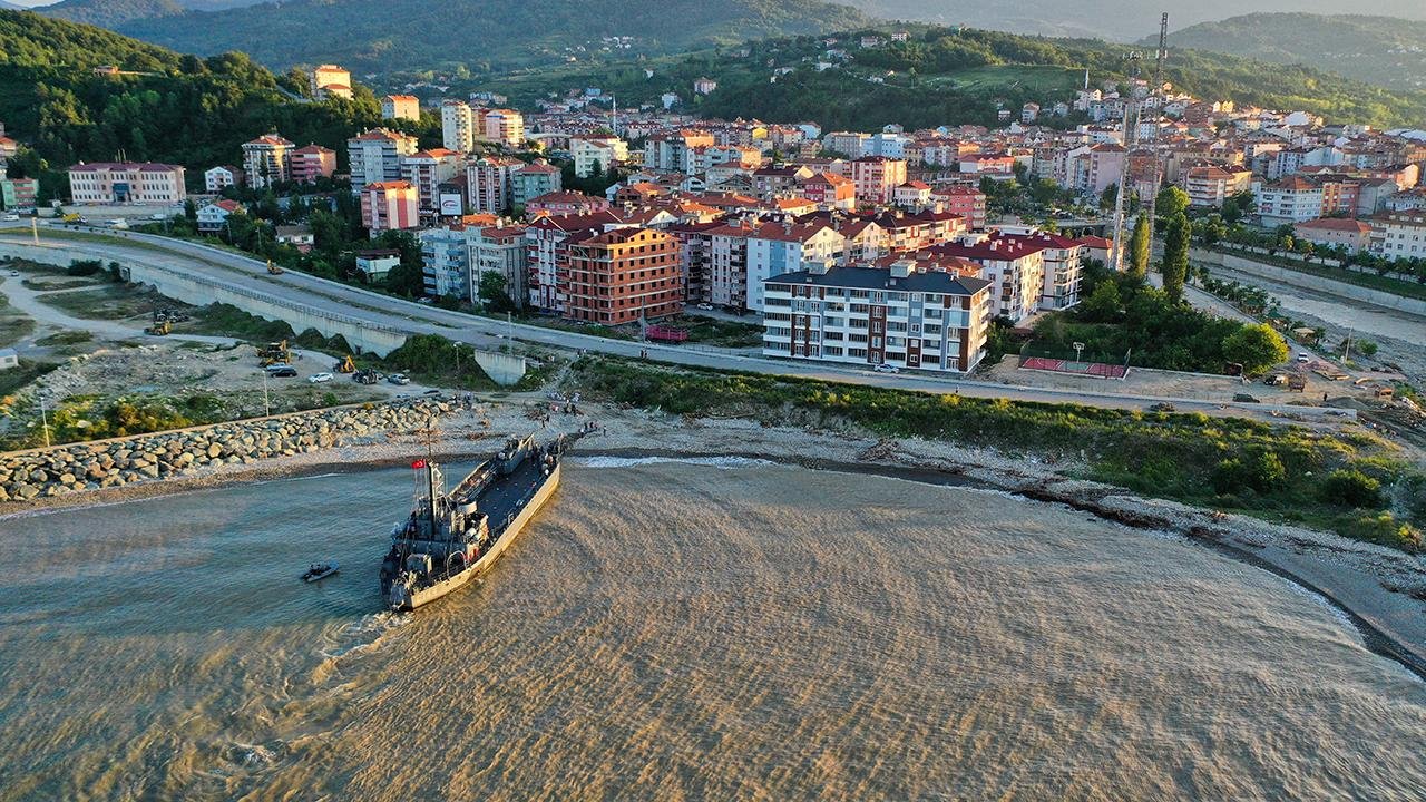 Sel bölgesine çıkarma gemisiyle yardım
